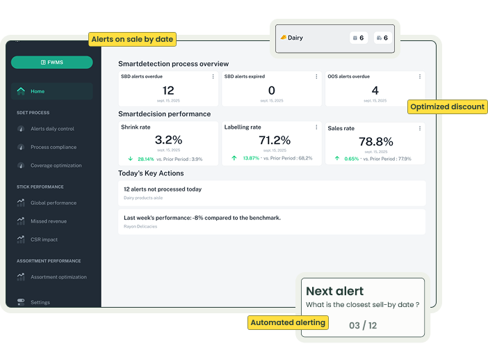The Food Waste Management System (FWMS) is Smartway's comprehensive AI-powered platform that transforms how retailers manage short-dated products—turning potential losses into measurable value.